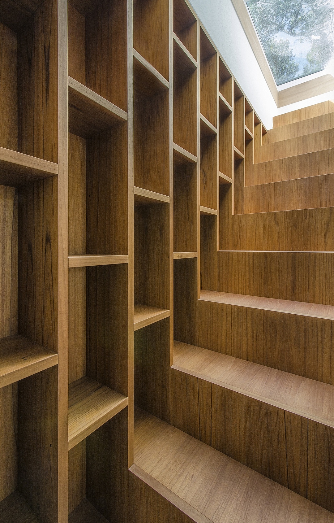 The 04 Counter is Rem Koolhaas’ signature piece of his line of furniture for Knoll. “Beginning as a monolithic stack of three horizontal beams, the user can rotate the top two beams and transform this wall-like unit into a series of shelves and cantilevered benches—a metamorphosis from a spatial partition to a communal gathering place.”